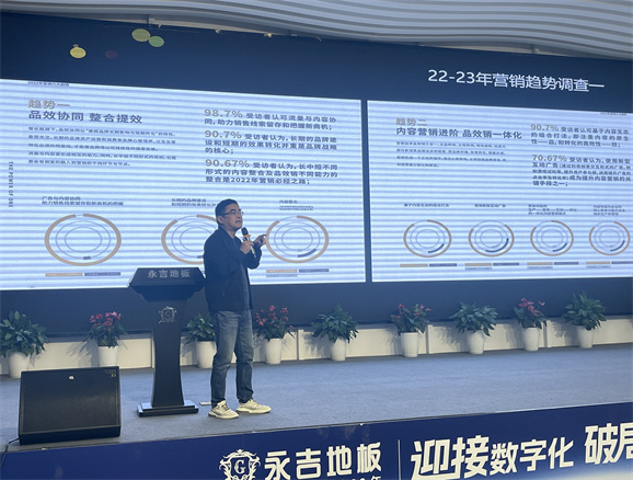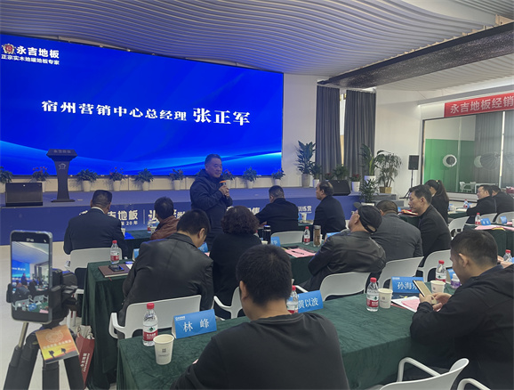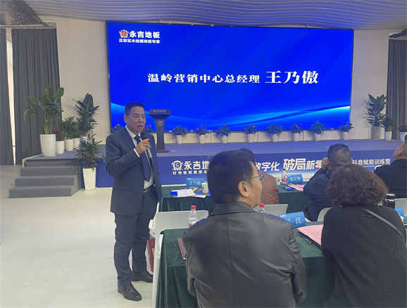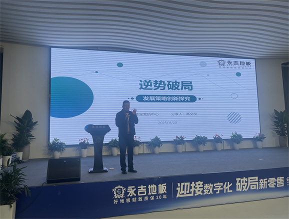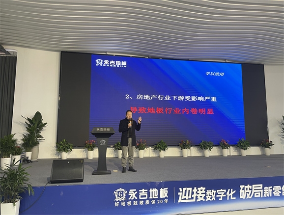 董事長助理胡俊青先生圍繞”實木地暖地板行業(yè)發(fā)展趨勢“主題,1、消費大環(huán)境分析,2、地板行業(yè)現(xiàn)狀 3、對于目前市場環(huán)境的現(xiàn)狀規(guī)劃:店面升級:以消費體驗為主 、 產(chǎn)品升級:聚焦實木 補充三層、 團隊打造:快速完善 1+2+1模式。