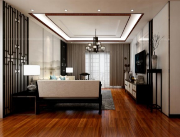 用木地板,木家具,木飾面組合成的新中式家居